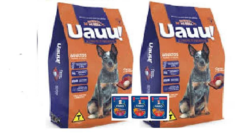 KIT 2 UAUU CÃES ADULTO PREMIUM 20KG+3 SACHES FARO